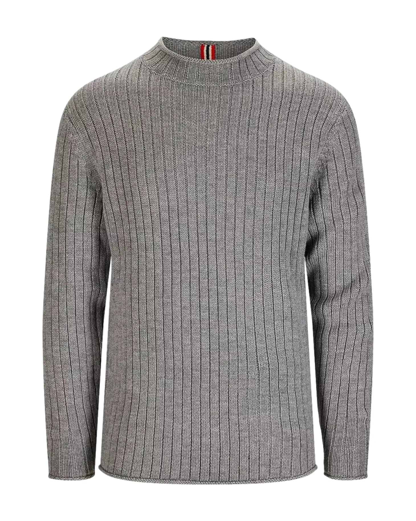 Løst ribbestrikket merinoullgenser med rullehals som er allsidig på tvers av sesonger og aktiviteter.