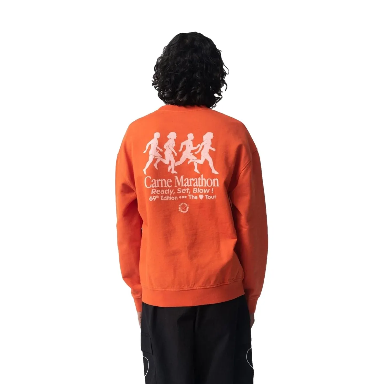 Genser med print på brystet og større print på ryggen.