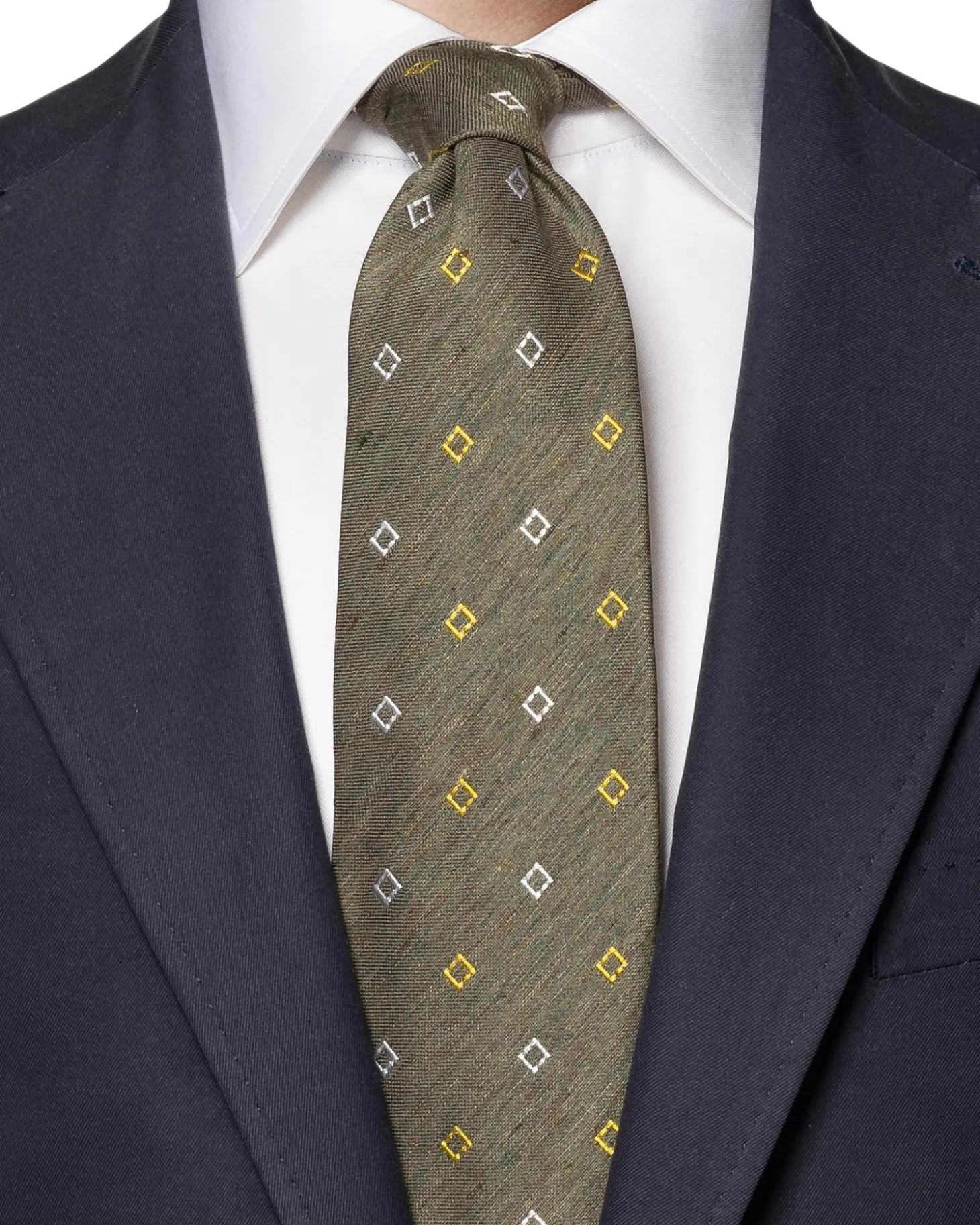 Eton Geometric Silk Linen Tie Slips Mørkegrønn