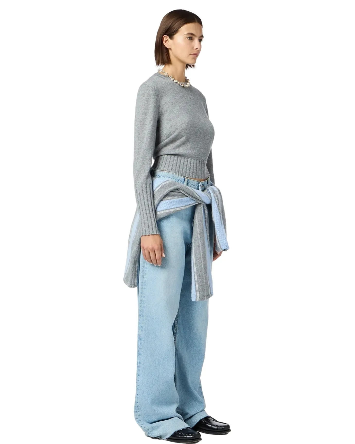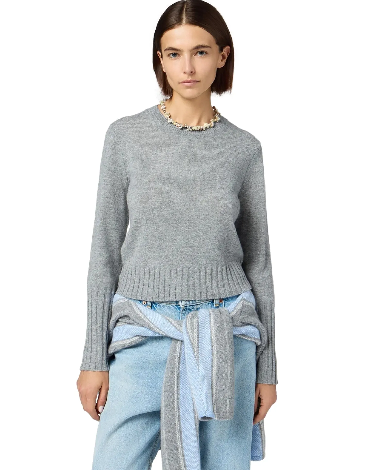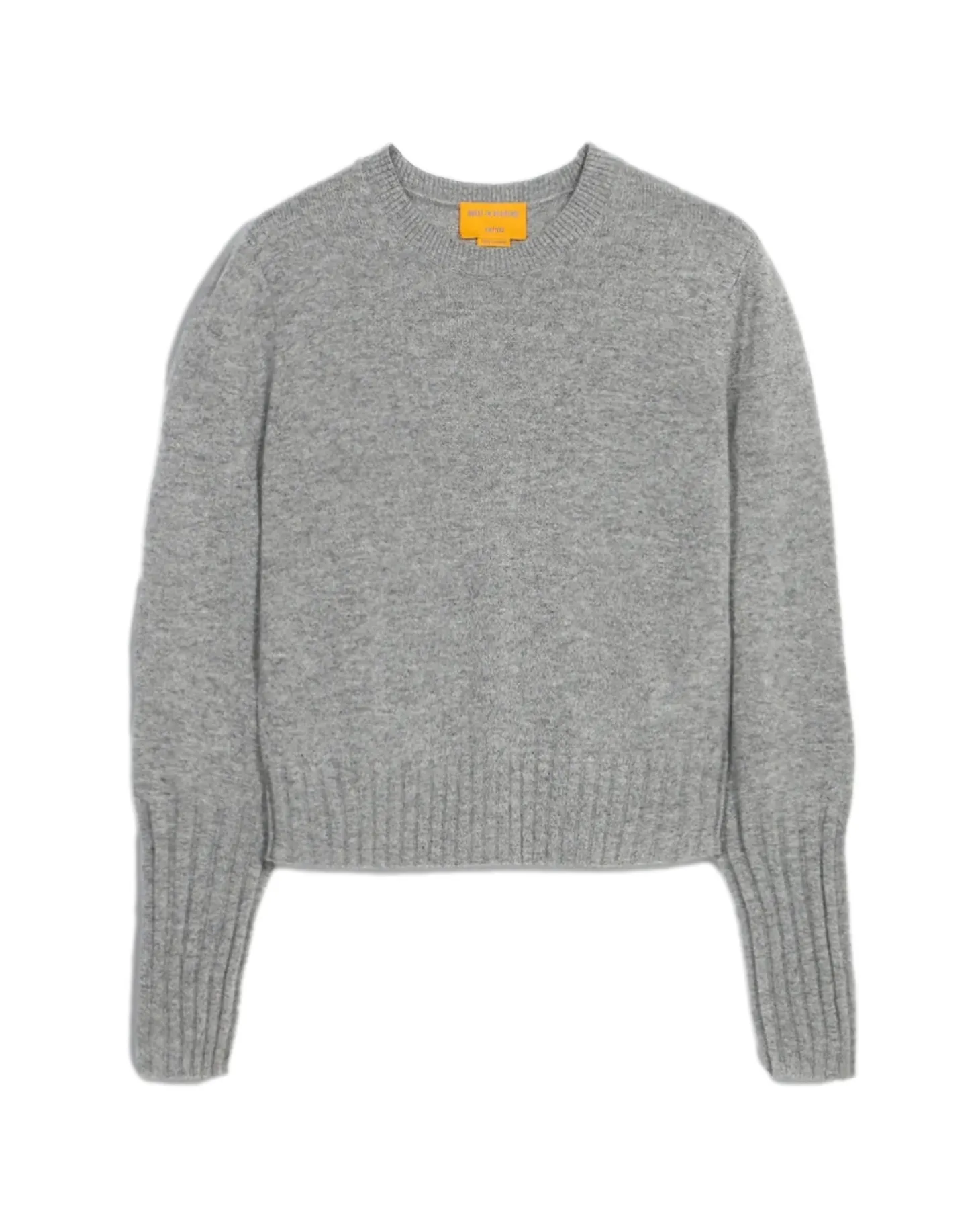 Shrunken Crew fra Guest In Residence med smal passform, lett strikket, høye ribbestrikkede ermer og kant.
