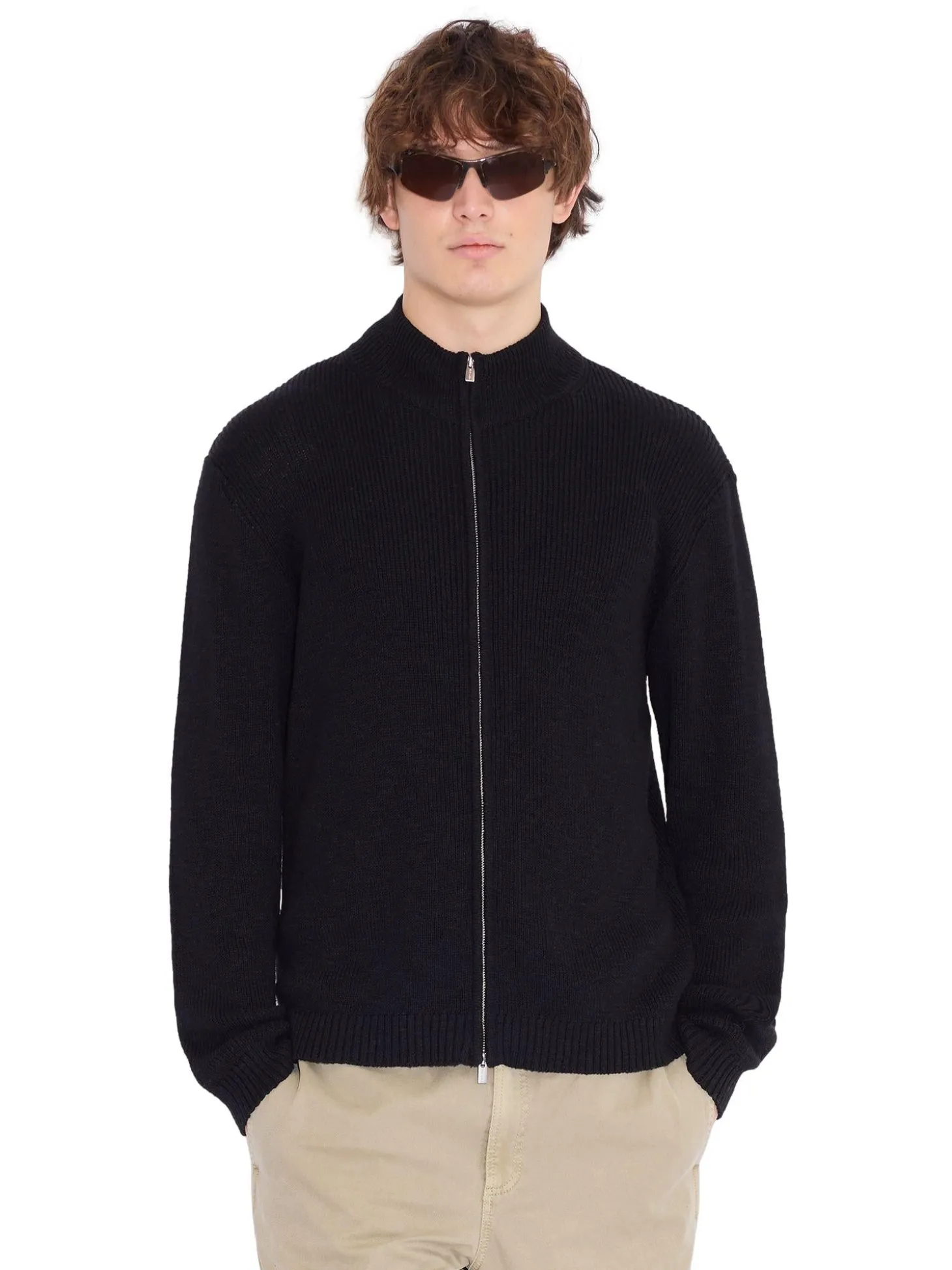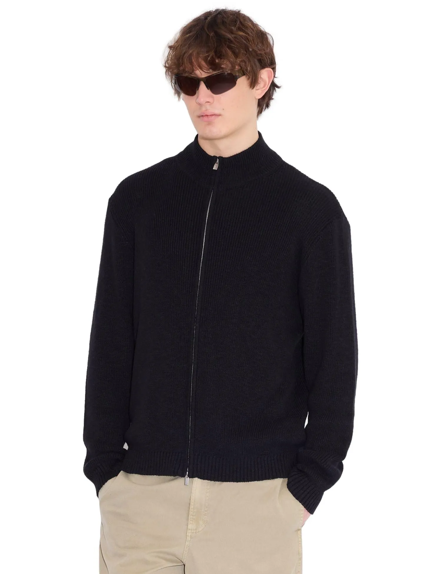 Cardigan med høy hals i løs og avslappet passform.