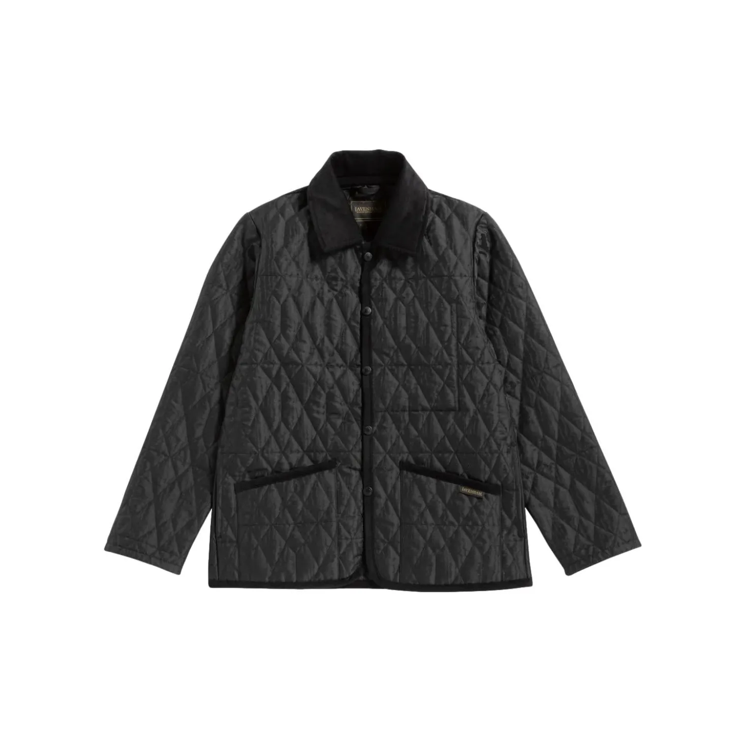 Kviltet jakke med store lommer i front og lukking med trykknapper.