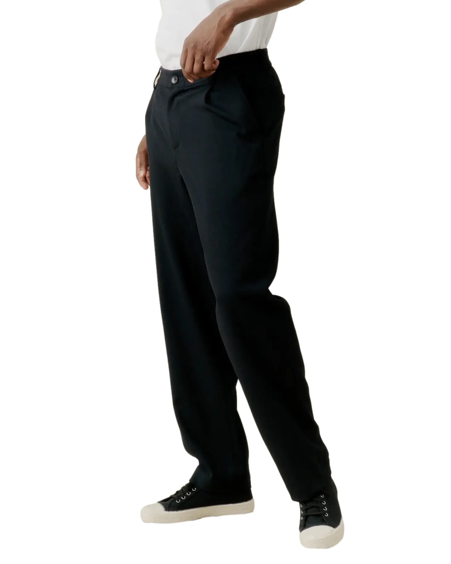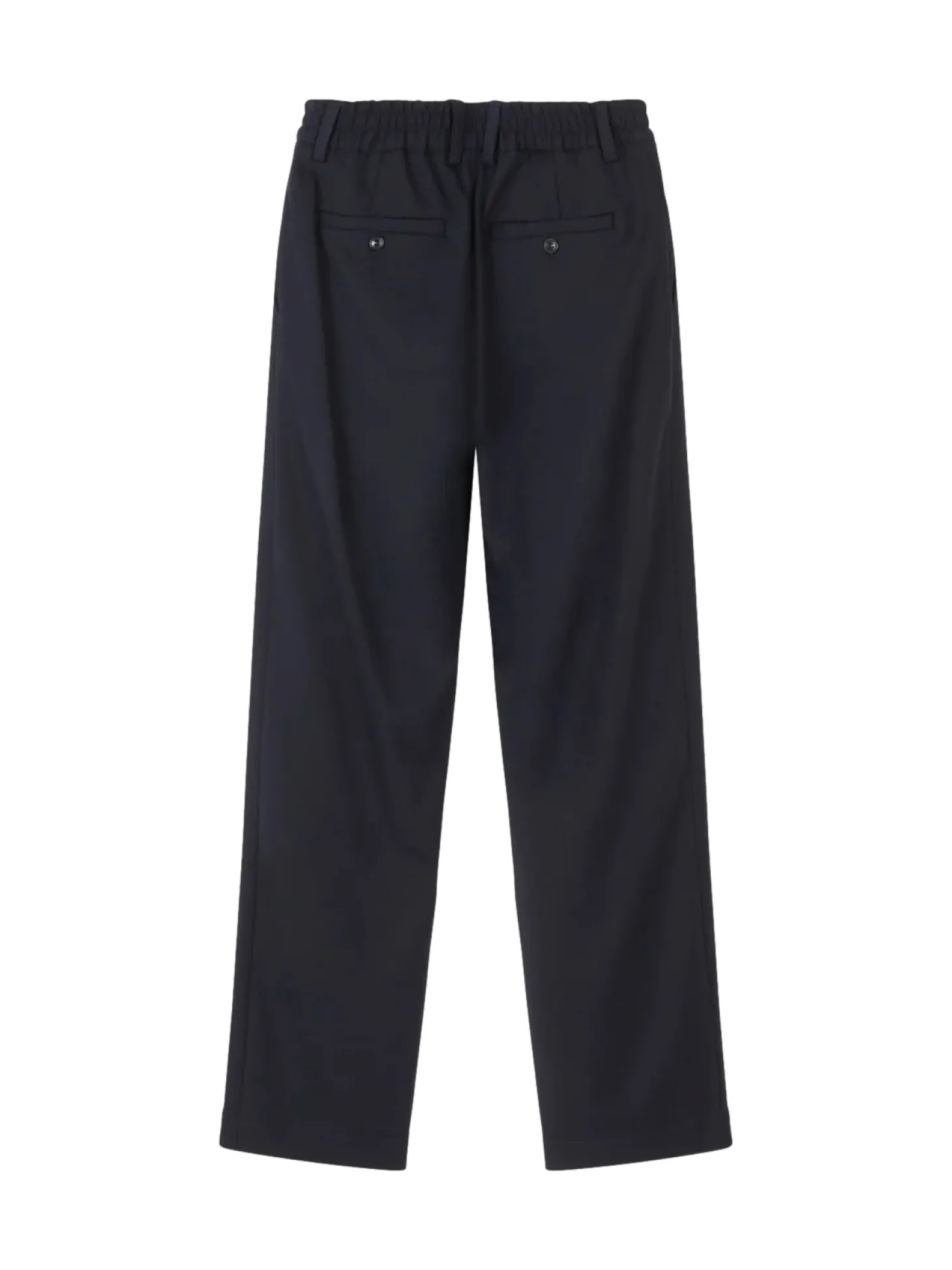 Denne buksen med brede ben i full lengde er perfekt for å fullføre en hel, moderne dress i interessante silhuetter eller bare en skjorte eller t-skjorte. Elastisk midje, gylf med glidelås midt foran og knappelukking. Mellomlommer bak og skrå lommer foran. Moderne skreddersøm for allsidig bruk.