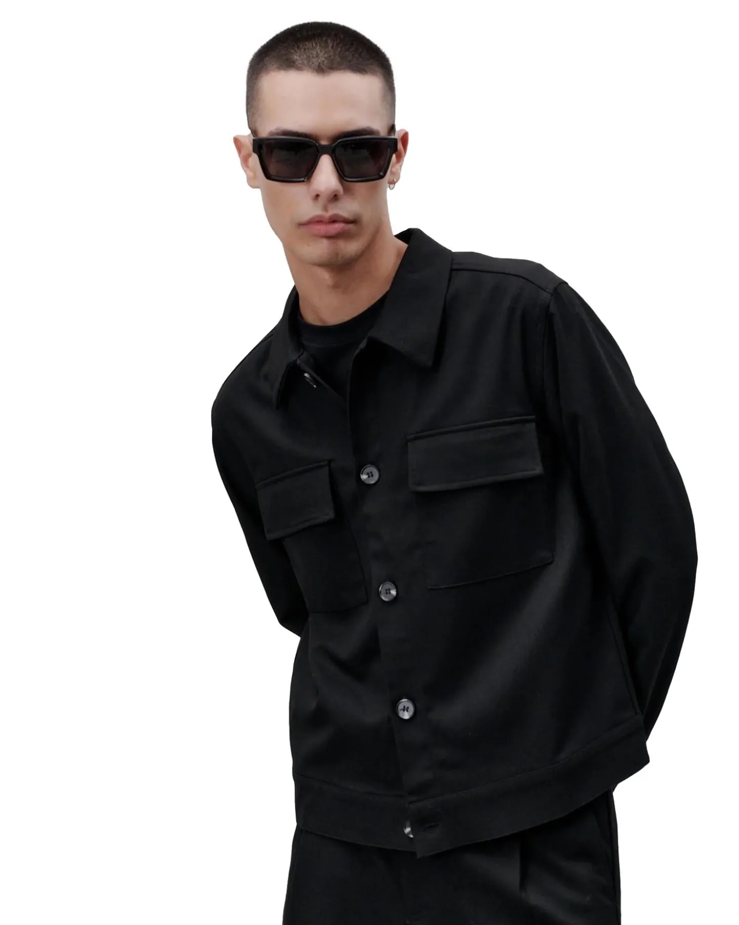 Grov overskjorte. Mind-skjorten er et alternativ til en jakke, har krage, påsydde lommer med klaffer på brystet og lommer i sidesømmen.