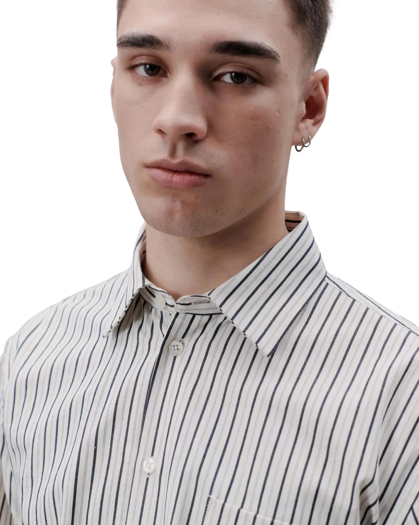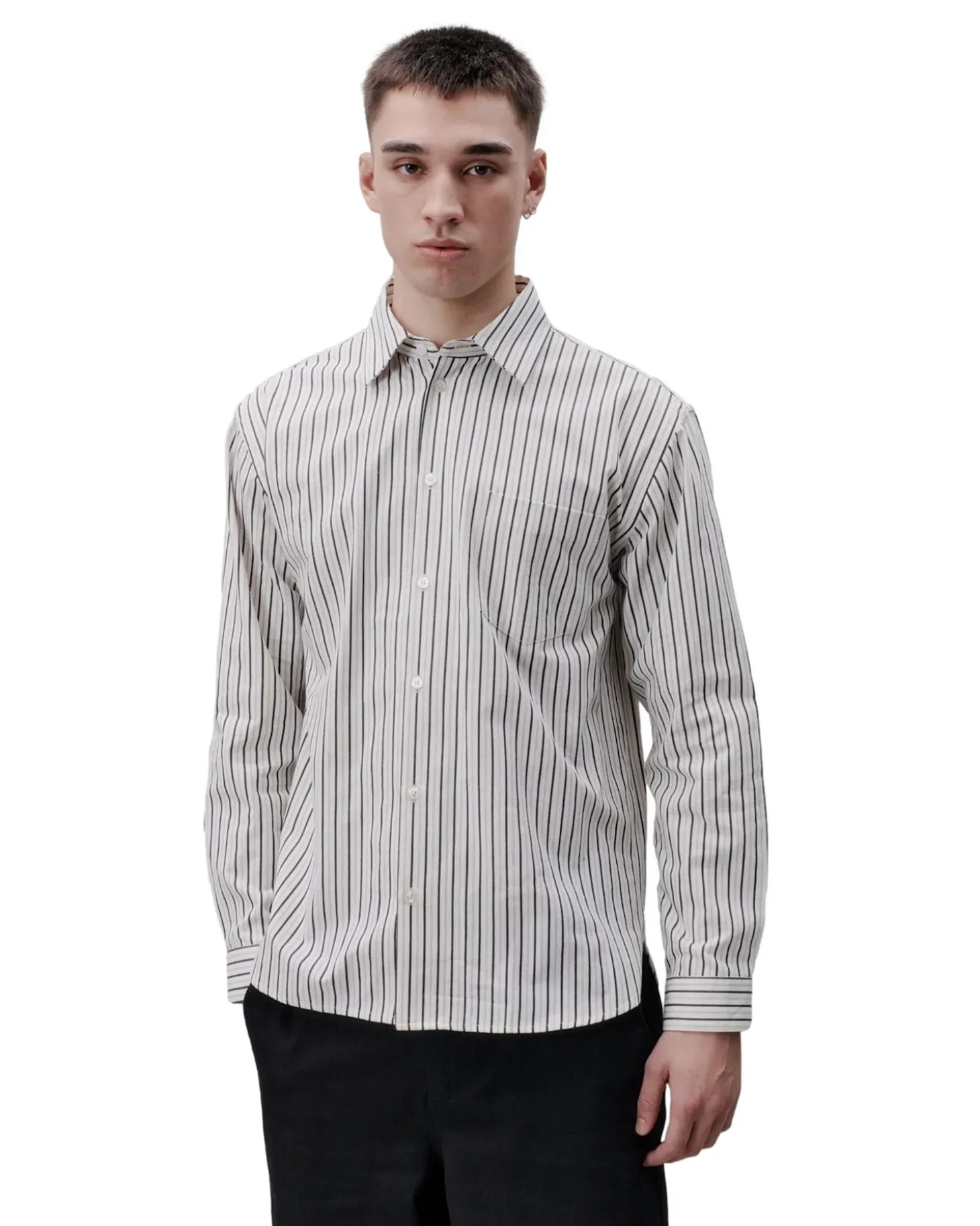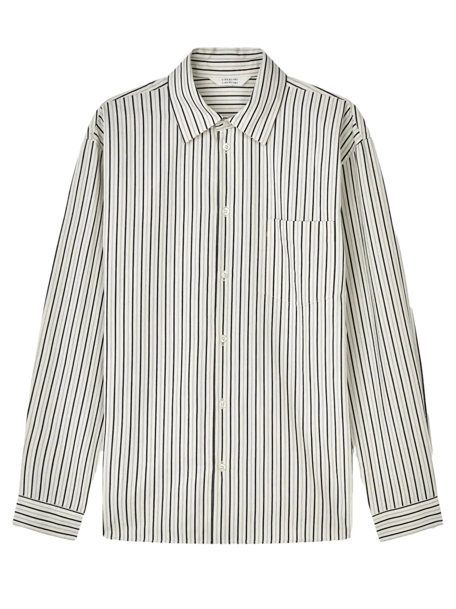 Skjorte i stripemønster med brystlomme. Løs og avslappet passform.