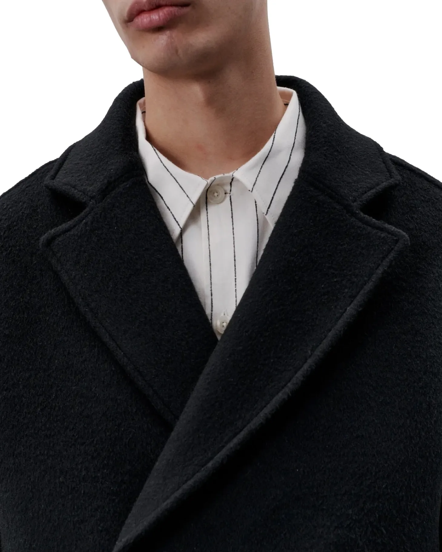 Moderne skreddersøm for allsidig bruk. Denne formelle kåpen med klassisk snitt er laget av en italiensk børstet, kraftig ull og er et klassisk libertinerplagg. Har en lett A-form med lav skulder, skrå velourlommer og en høy splitt midt bak. Kåpen er skåret under kneet, helfôret og har MEIDA-termoisolasjon.
