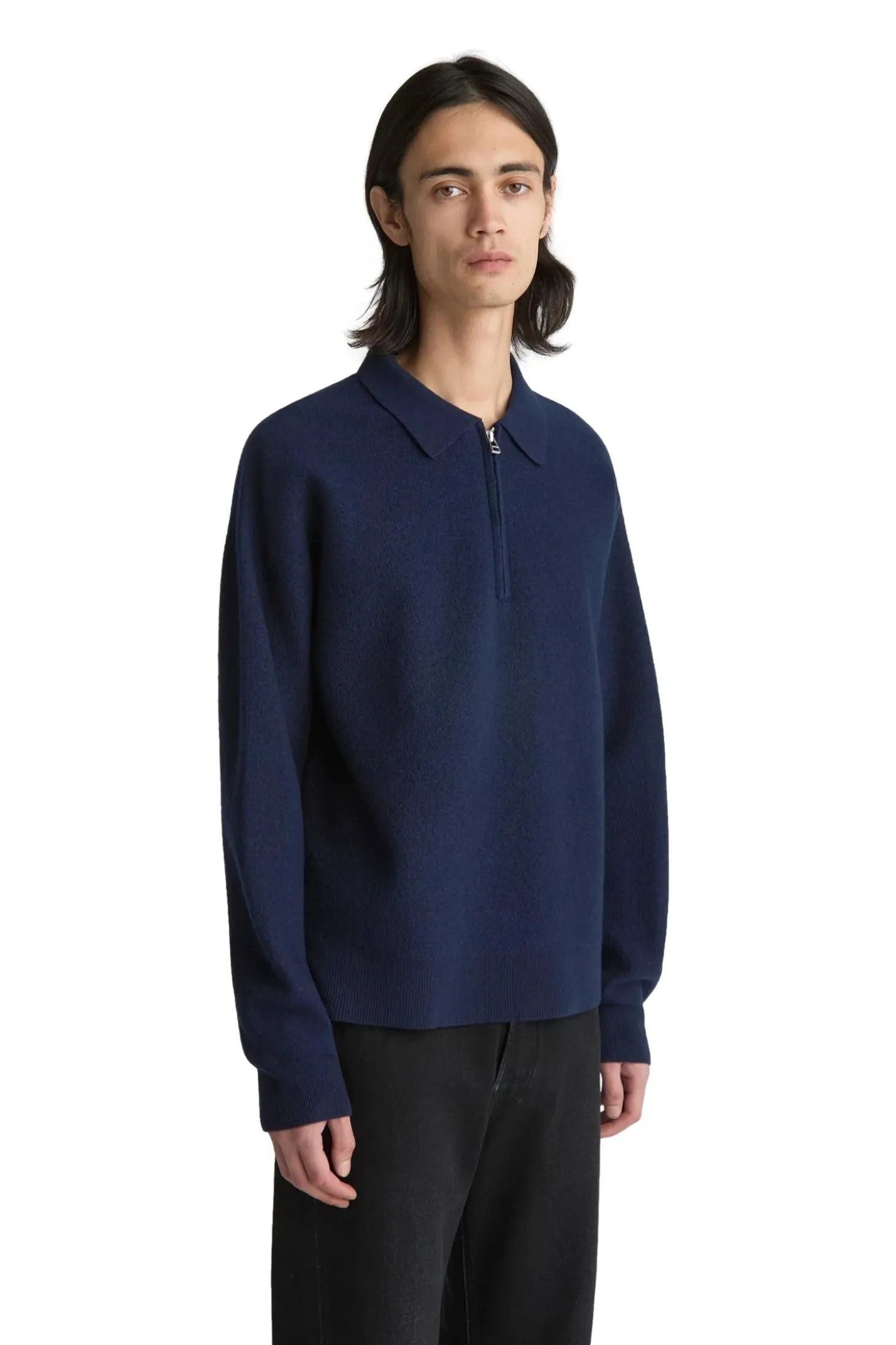 Laget i ren merinoull, kokt for å oppnå en perfekt balanse mellom varme, pusteevne og mykhet. Vekten av den kokte merinoullen gir Kevin-genseren med kvart glidelås et mykt og tungt fall.