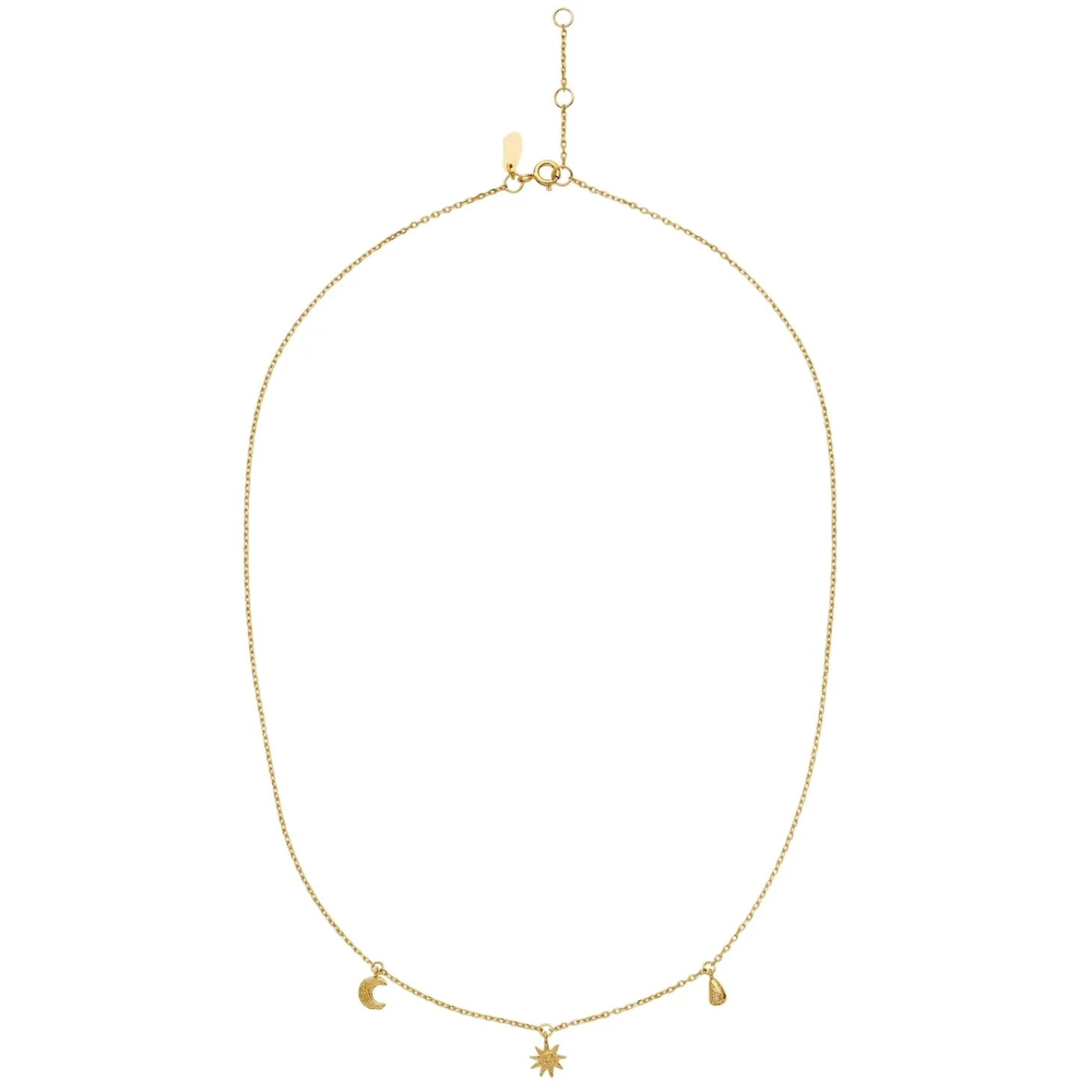 Gullsmykke med 3 små anheng.