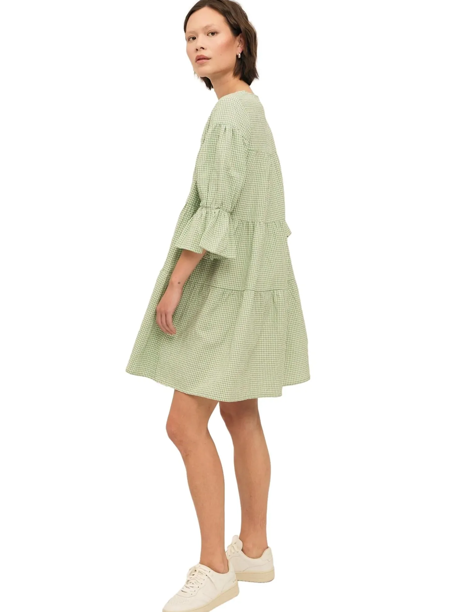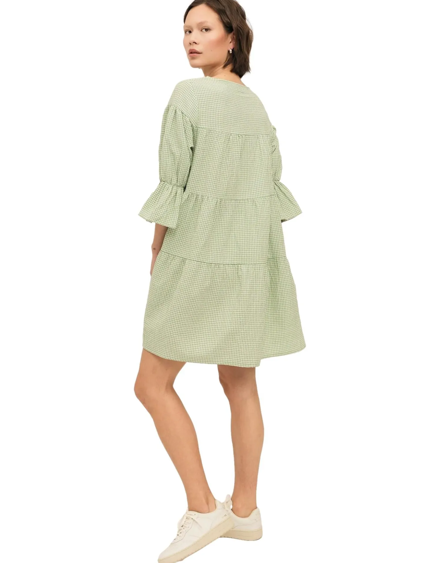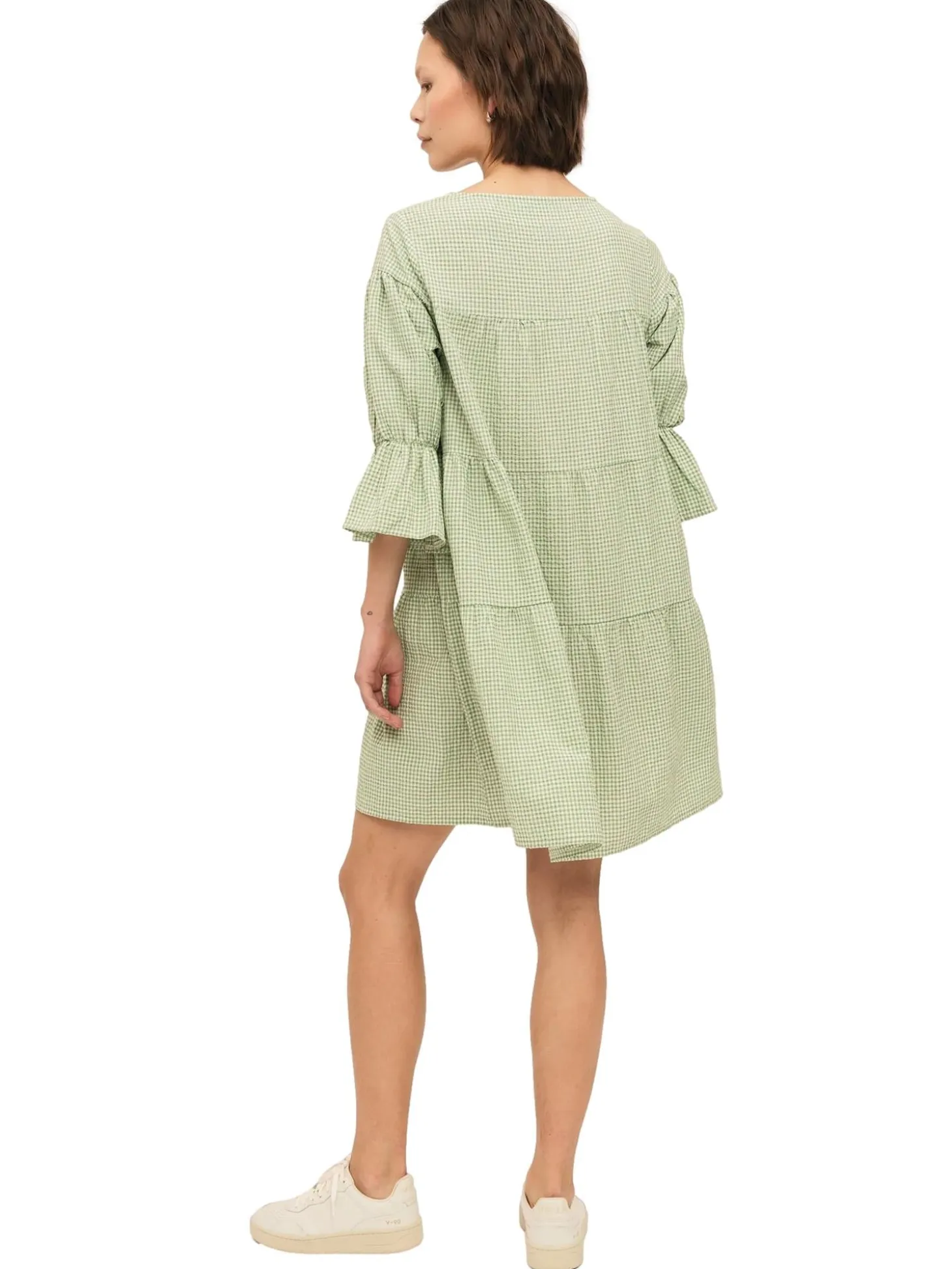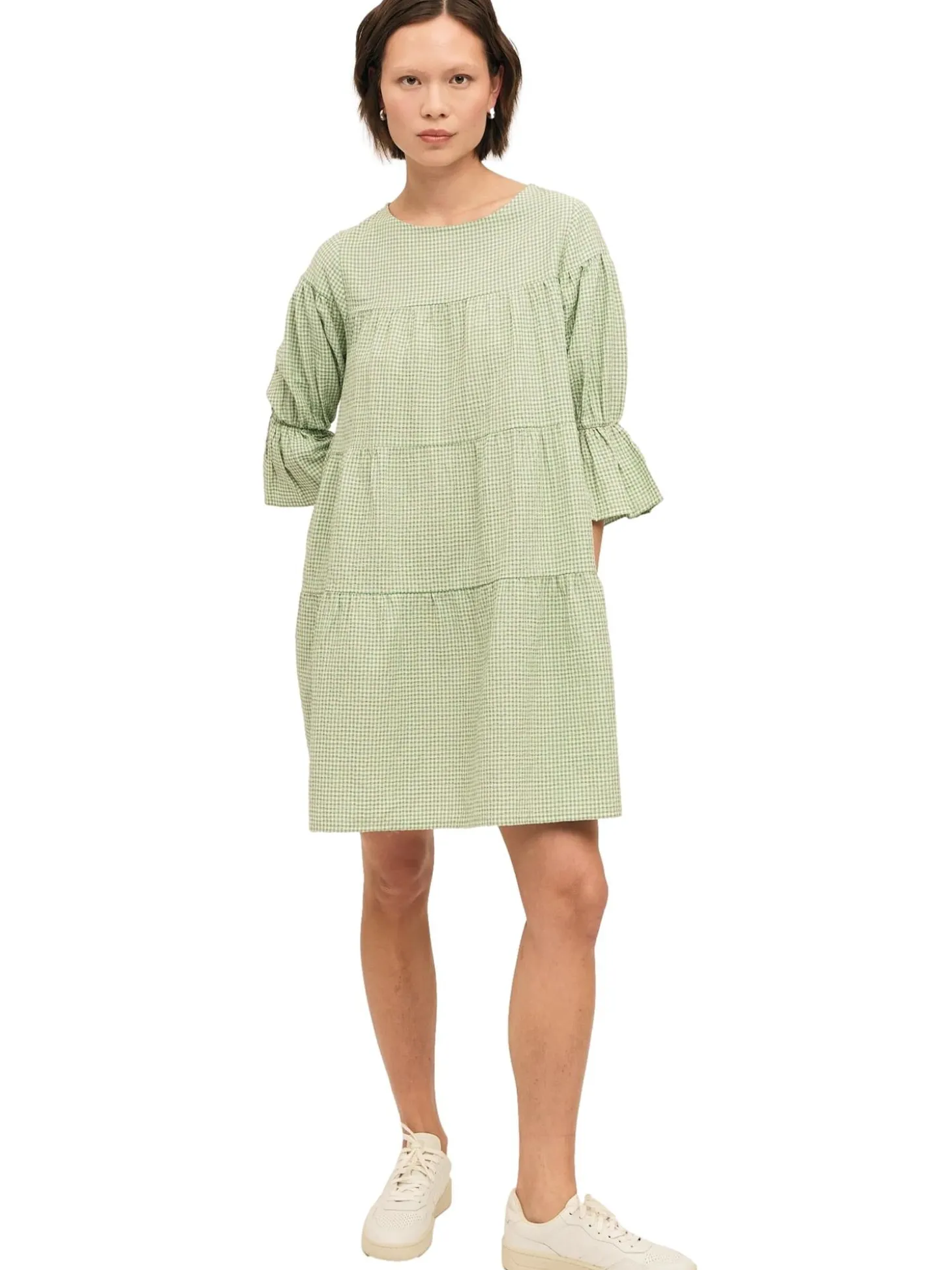Kjole med rund hals i lett og løs passform med kvart lange ermer.