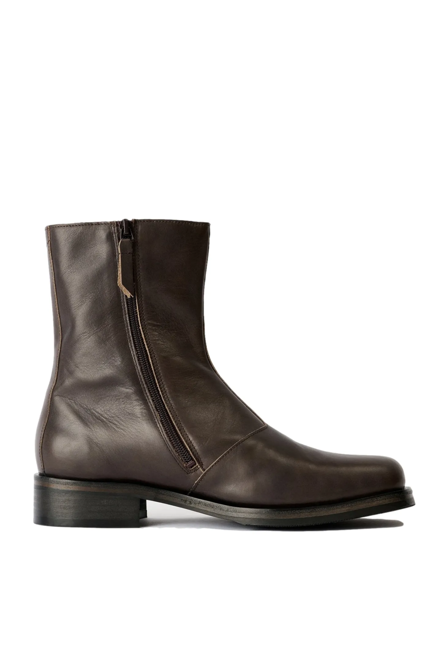 Produsert i italiensk kalveskinn med en gråbrun tone, har Camion-støvelen en Vibram-yttersåle laget i USA, en Kilger-mellomsåle i skinn fra Tyskland, YKK-glidelås på siden, metallnagledetaljer i Our Legacy og er helfôret i skinn.