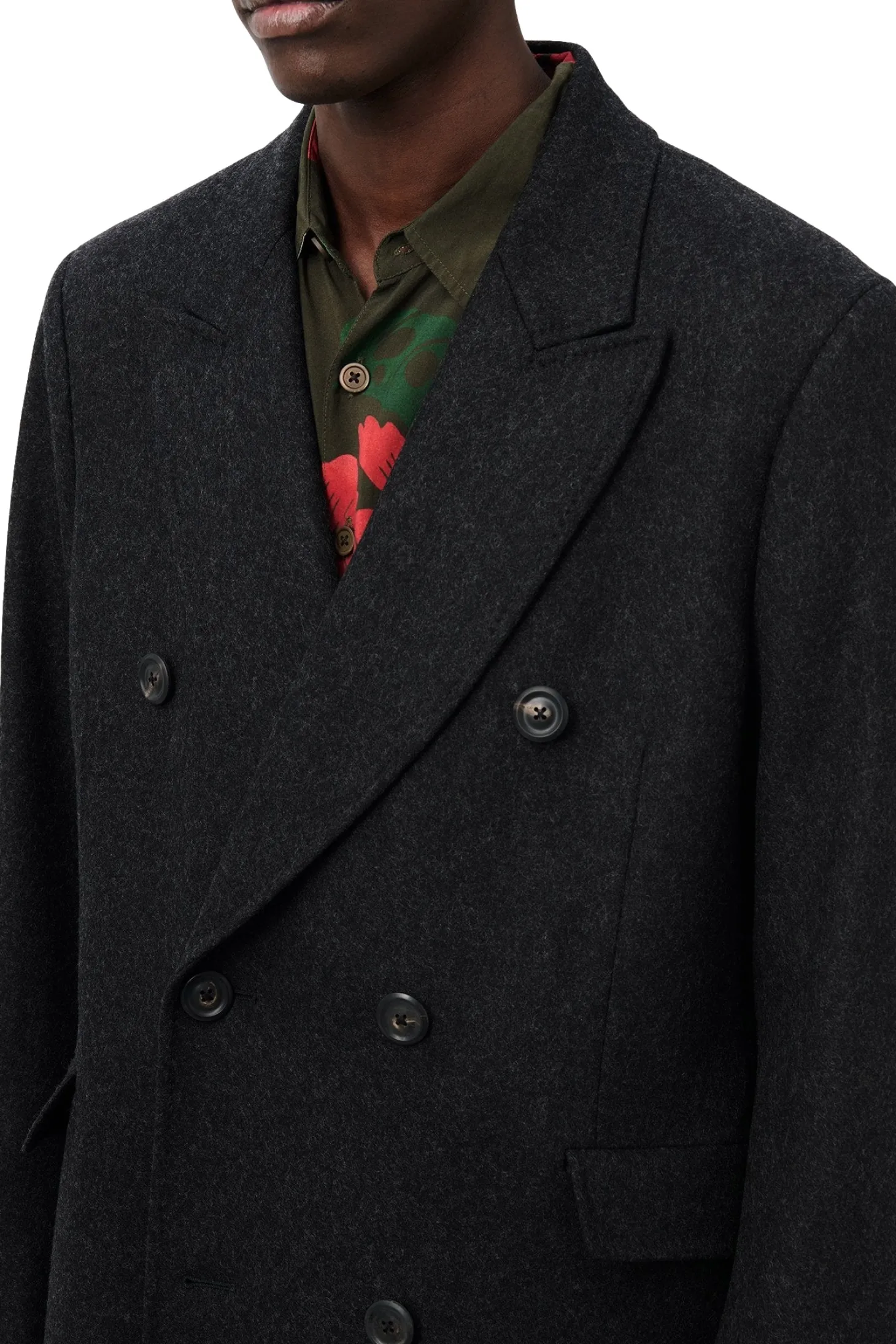 Produsert i italiensk jomfruull og polyamid med vannavvisende egenskaper, har denne hvalfrakken for menn en avslappet, skreddersydd passform og har en dobbeltspent konstruksjon med hornknapper, spiss slag, heldekkende fôr, lommer med klaff og en enkel splitt bak.