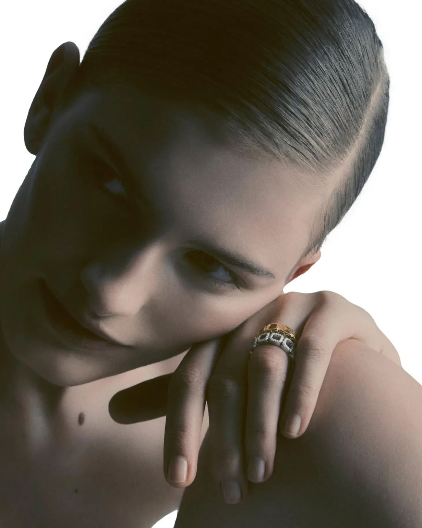 Sølvring med små kubistiske zirconia steiner.
