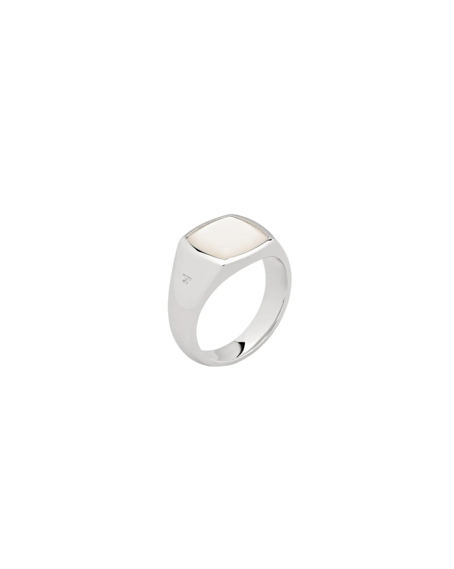 Kay Ring White MOP er en mellomstor signetring, en Tom Wood-klassiker. Den har en spesialkuttet hvit perlemorstein, ramme satt på en blank polert sølvoverflate.