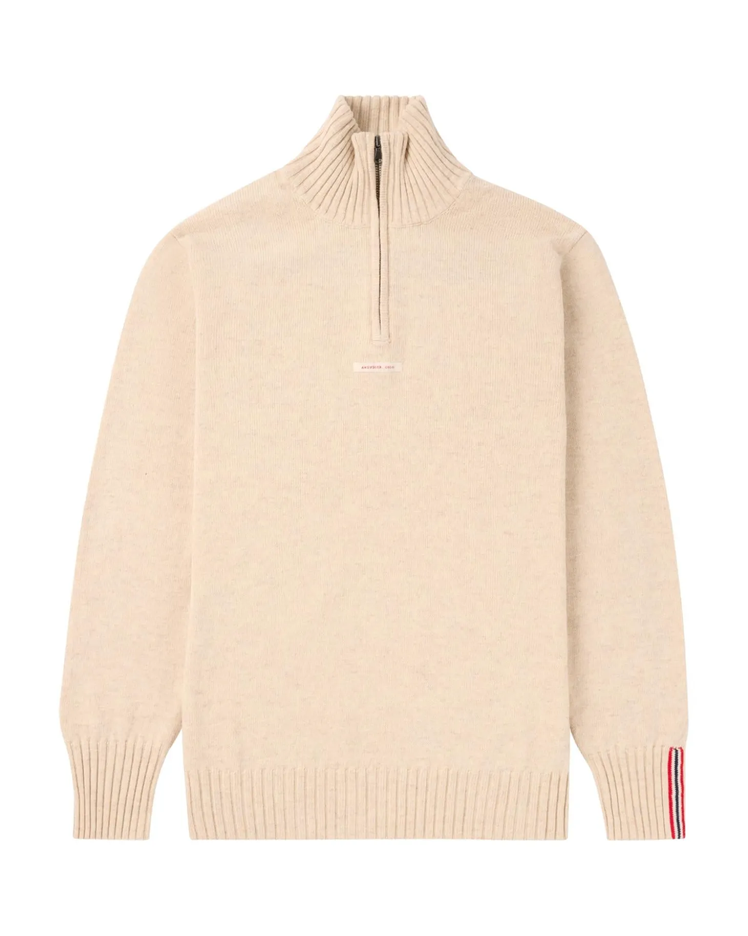 Nøye strikket i en myk blanding av merinoull, BCI bomull og nylon. Den er formet til en klassisk silhuett med en ribbet turtleneck og avsluttet med klassiske ribbekanter på ermene og nederst.