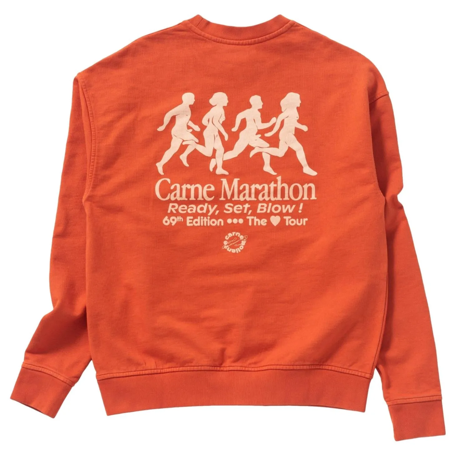Genser med print på brystet og større print på ryggen.