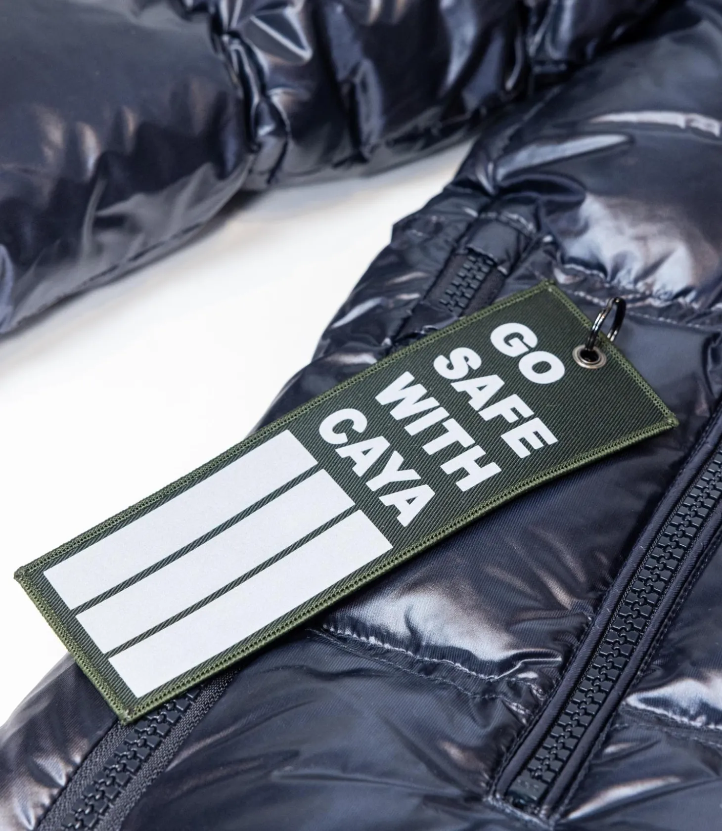 Glidelås og hette.
