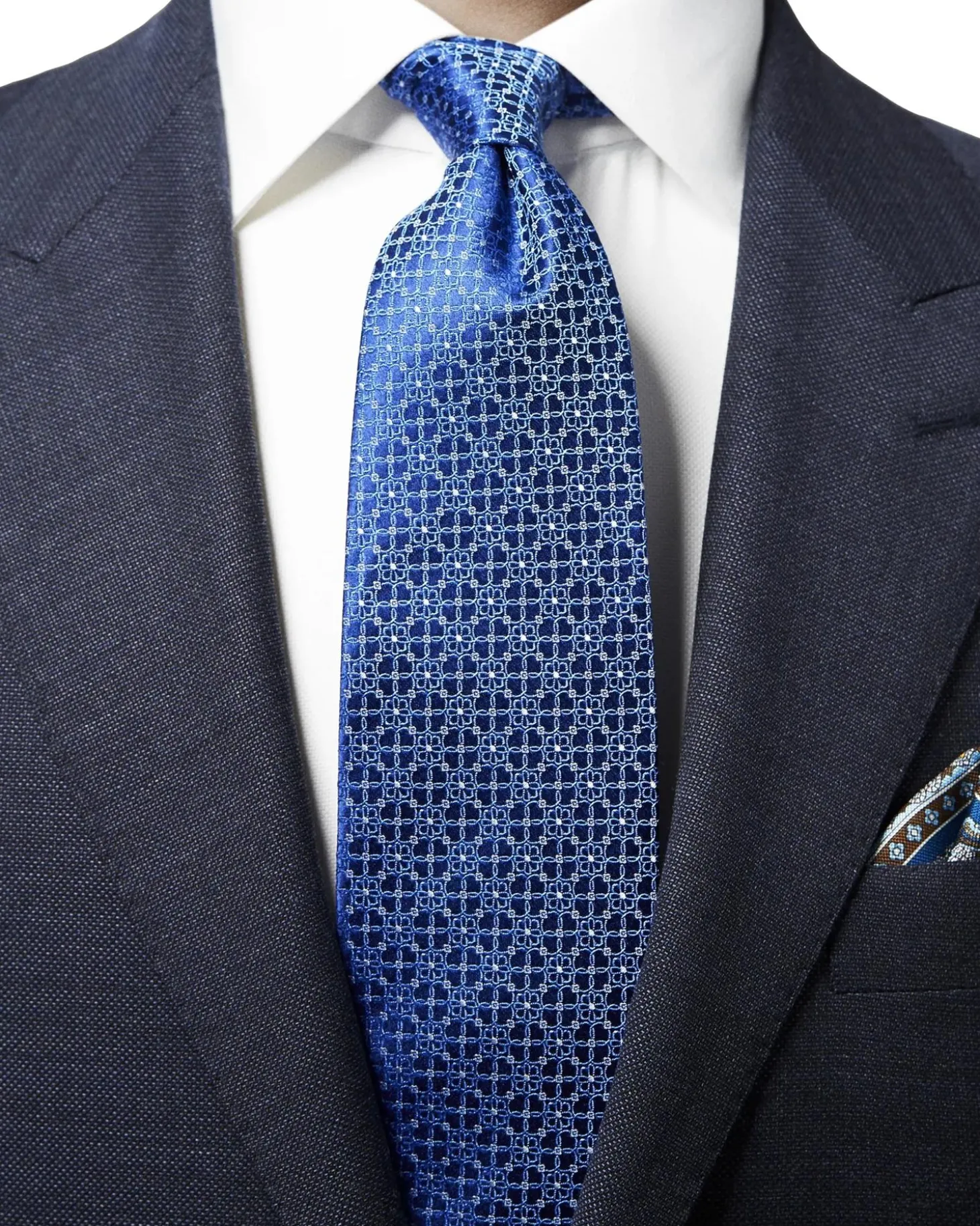 Vevd med et subtilt blomstermønster, setter dette slipset en elegant tone til utseendet ditt. Laget av ren silke av førsteklasses kvalitet som garanterer en luksuriøs tekstur, flott glans og livlige farger. Prøv den med en skjorte med dristig mønster, en ton-i-ton lomme-firkant og en skarp dress for et sofistikert forretningsutseende.