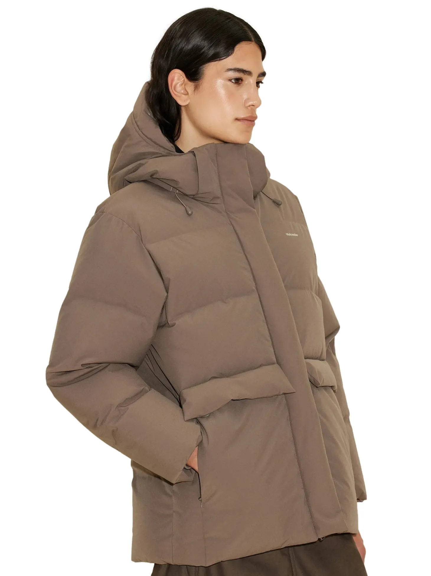 Varm og god dunjakke med liten logo på brystet. Jakken er fylt med dun og fjær som holder deg varm. Laget av 100% resirkulert polyester.