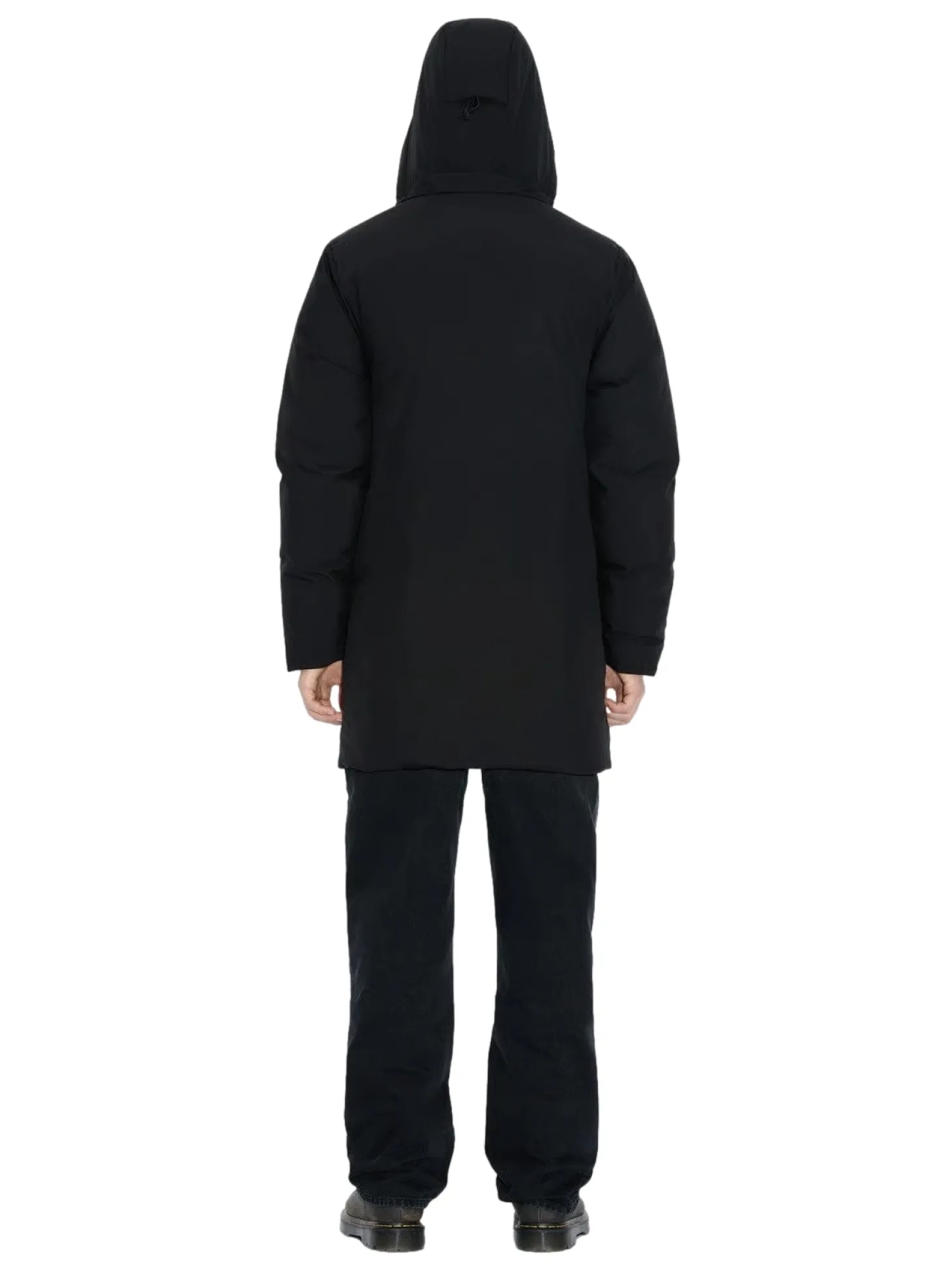 Lom-dunjakken er laget av et teknisk stoff som er polstret med et lettere dunfyll enn den originale Lom – noe som gjør den ideell for overgangsvær. Den har sidelommer, en innvendig brystlomme med glidelås, en kant under kneet, en avtakbar hette med justerbar snøring, toveis glidelås foran, justerbar kant og tettsittende mansjetter med innvendig ribbestrikk i ermene for å sikre optimal isolasjon.