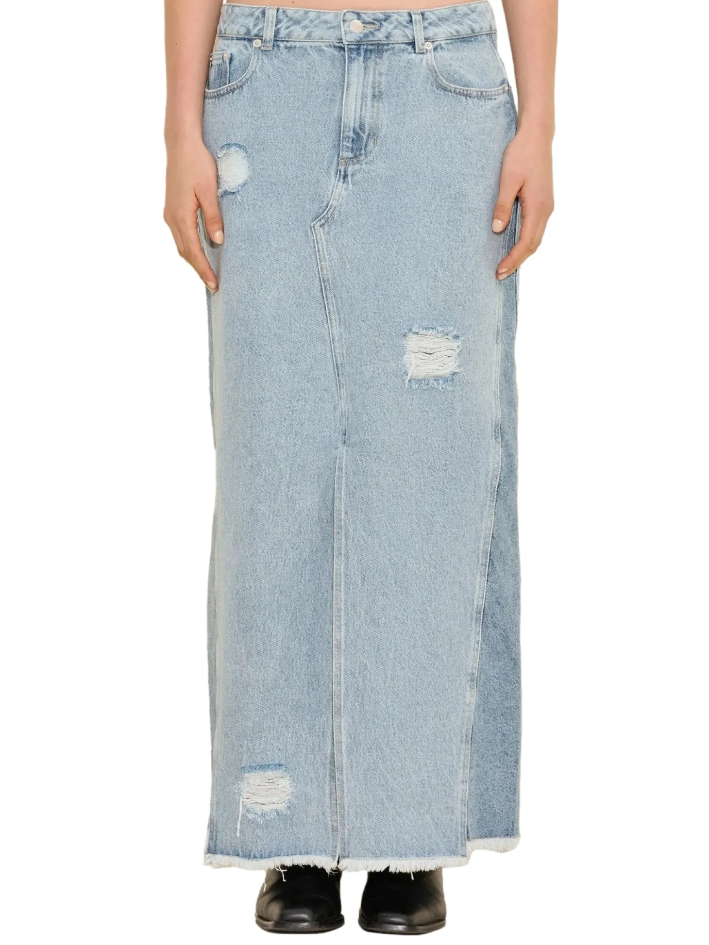 Langt dongeriskjørt i regular fit passform med middels høyde på livet.