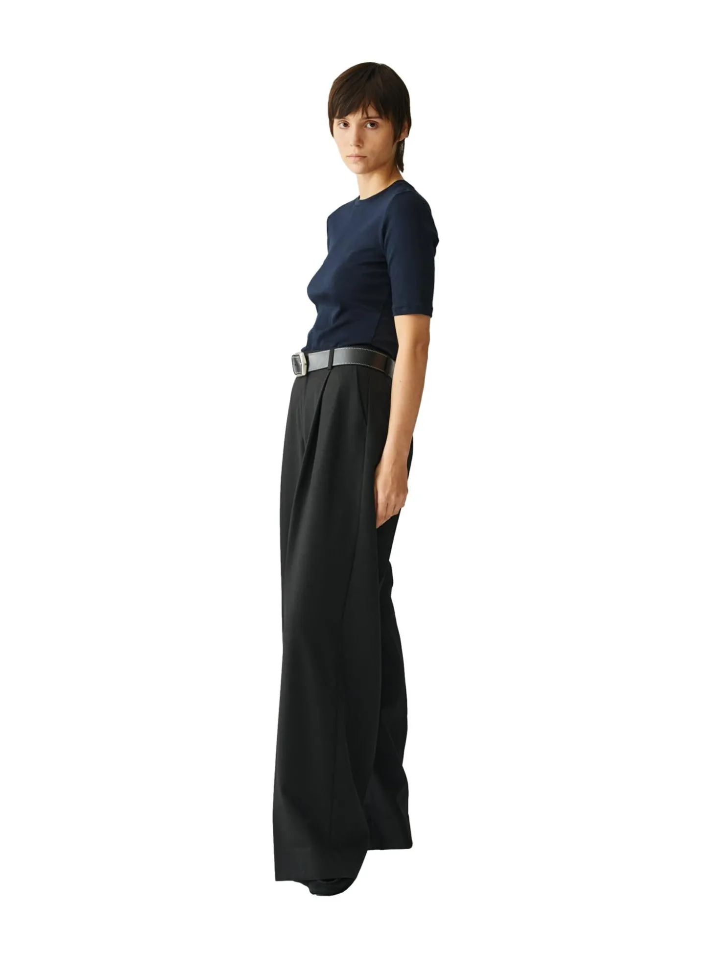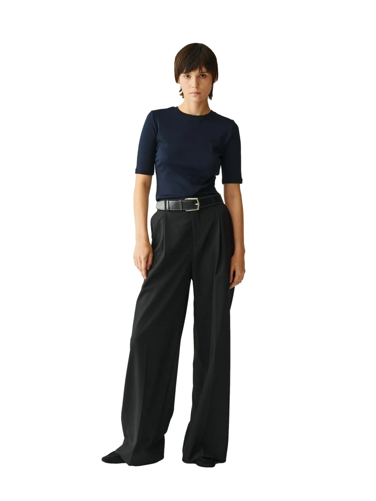 Ribbet t-skjorte med 3/4 lange ermer, rund hals og smal, men elastisk passform.