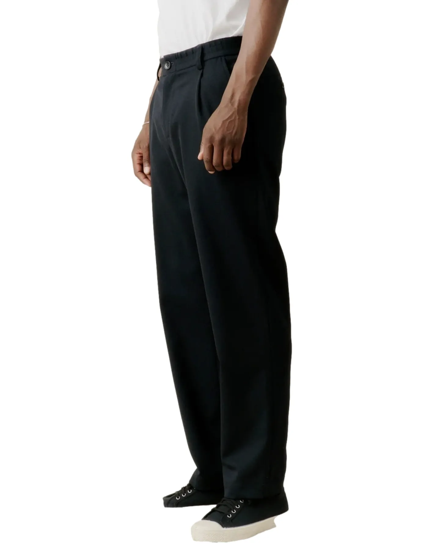 Denne buksen med brede ben i full lengde er perfekt for å fullføre en hel, moderne dress i interessante silhuetter eller bare en skjorte eller t-skjorte. Elastisk midje, gylf med glidelås midt foran og knappelukking. Mellomlommer bak og skrå lommer foran. Moderne skreddersøm for allsidig bruk.