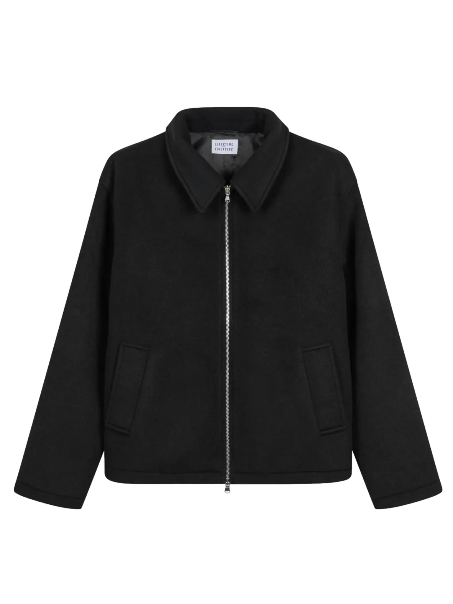 Ulljakke med krage og stikklommer i løs og avslappet passform.