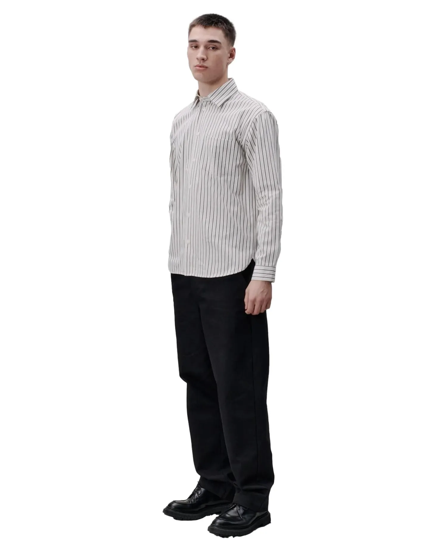 Skjorte i stripemønster med brystlomme. Løs og avslappet passform.