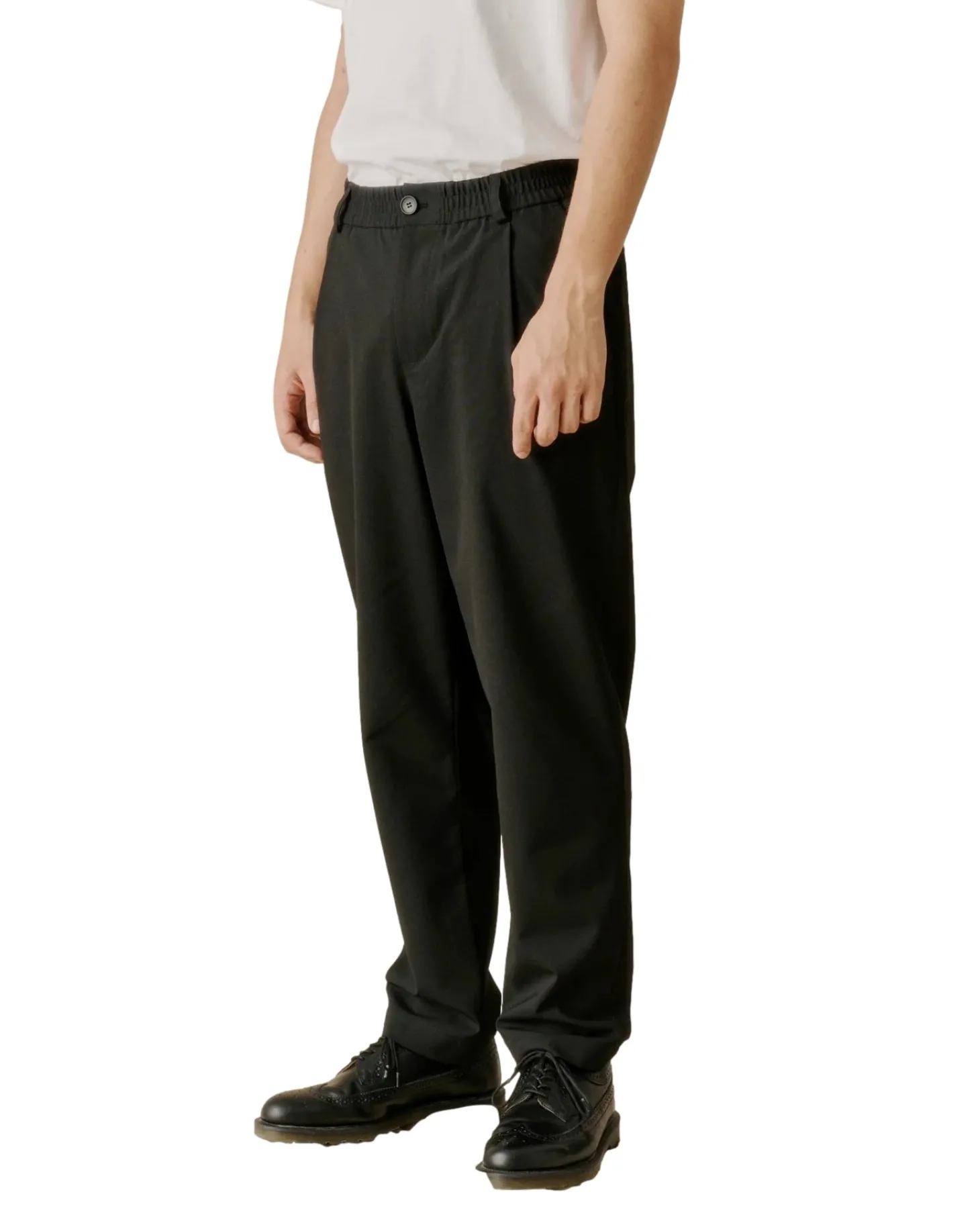 Avslappet bukse med moderat vid passform med elastikk i midjen, glidelås og knappelukking, laget av høykvalitets polyester/ullblanding med litt elastan for stretch og komfort.