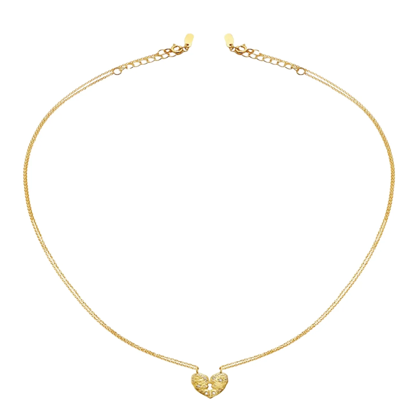 To halvdeler blir til en helhet i Keeper-halskjedet. Med dobbeltkjede og to halve hjerter kan du enten beholde det hele selv eller dele det med en du holder av.