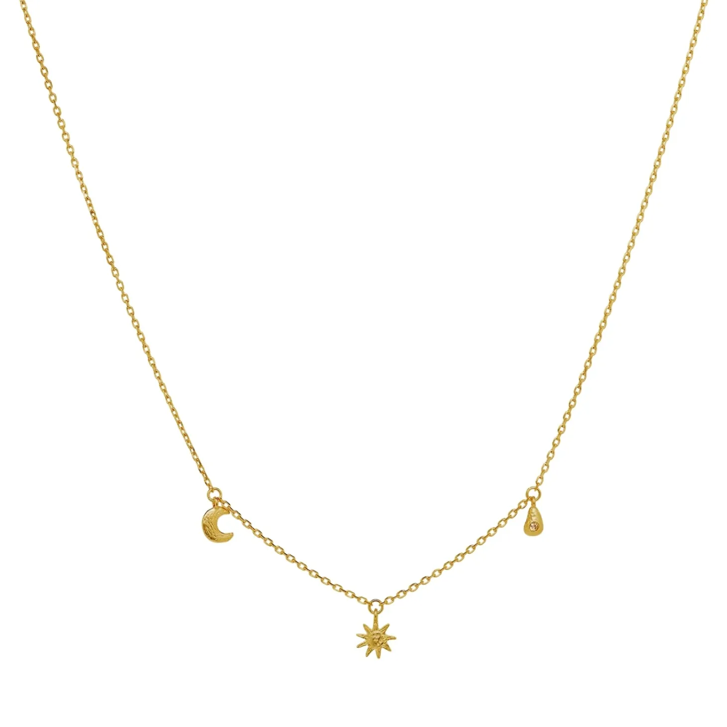 Gullsmykke med 3 små anheng.