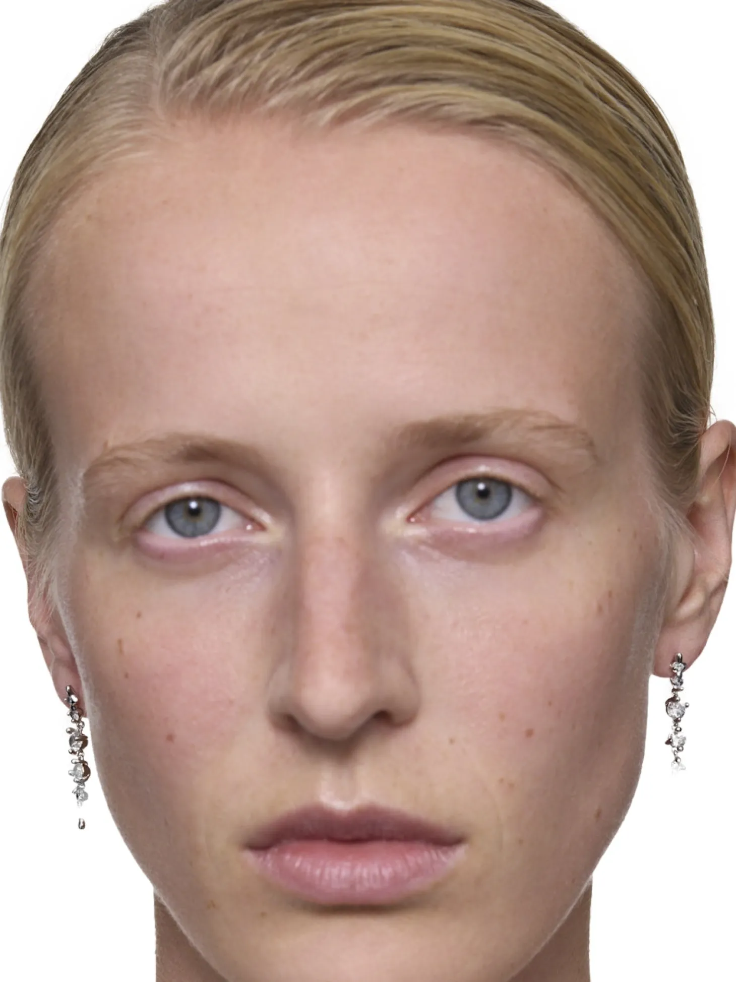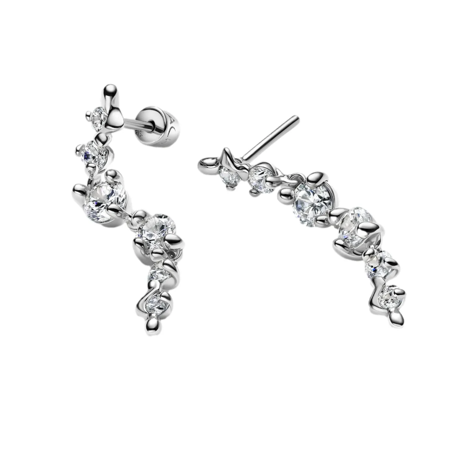 Statement-ørering med 6 hvite zirkoner i en skjev stiftinnfatning.
