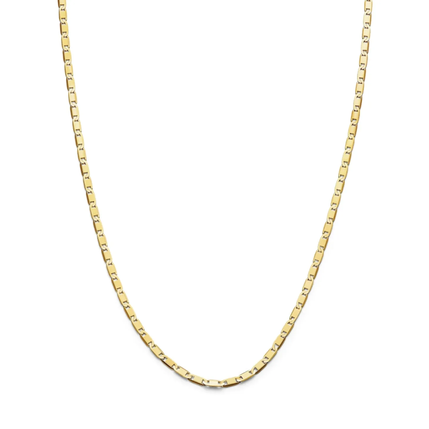Enkelt gullkjede i minimalistisk design. Lengden kan justeres ved hjelp av låsemekanismen og det blir max 70 cm langt.