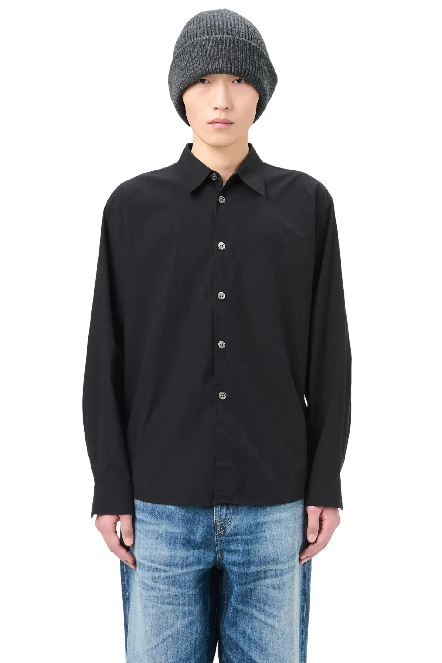 Skjorte i normal, rett passform med perlemor knapper i kinesisk poplin stoff.