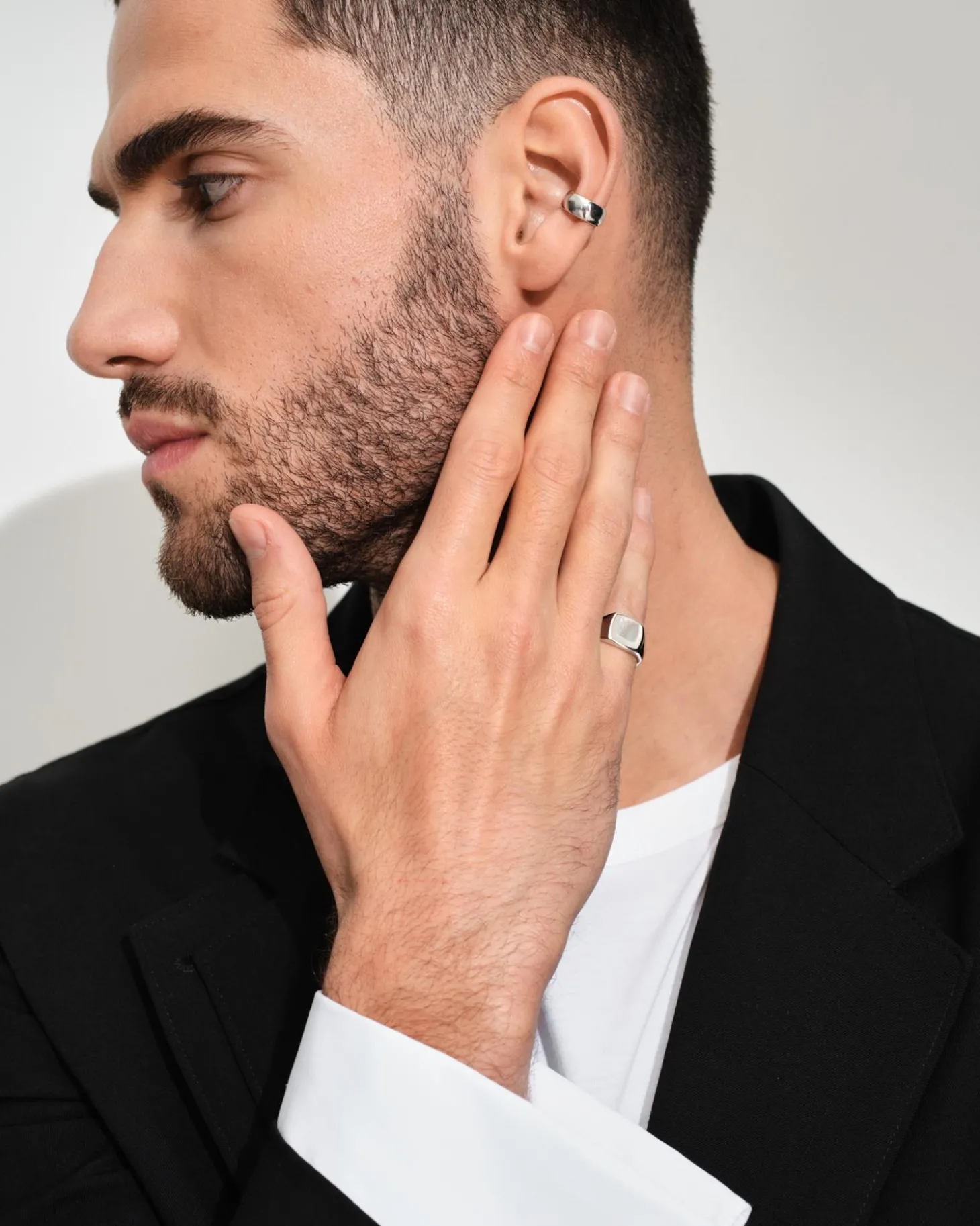 Kay Ring White MOP er en mellomstor signetring, en Tom Wood-klassiker. Den har en spesialkuttet hvit perlemorstein, ramme satt på en blank polert sølvoverflate.